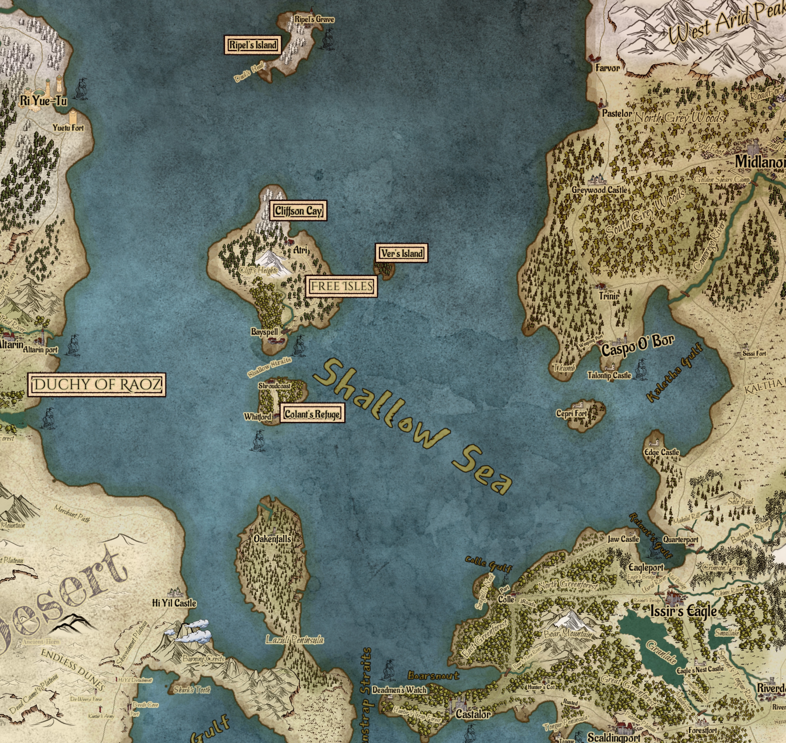 -The navy revolt and a painful resolution. The King in Midlanor, the landings at Seagull's Neck and Deadmen's Watch. Prelude to the massive Bayspell's approach naval battle (Cofol name, Battle of the Shallow Straits)