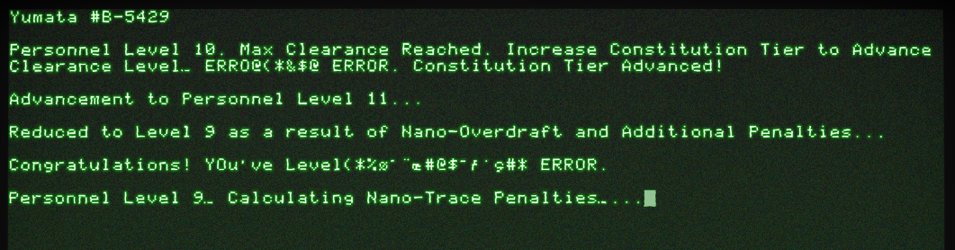 (*&@$(^%… Welcome Personnel B-5429! Personnel moved from Home-Brew Iterant SI control to Local AI Control. Personnel File linked to Local Terminal AI. Terminal AI has Access to an Expanded Network!