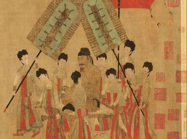 冕服/Mian outfit: This referred to the most formal set of robes worn by the Emperor during important occasions, this remained relatively unchanged throughout Chinese history and is still the most iconic outfit associated with the Emperor. Below, to the left, is an example of the robes the Emperor would be wearing (though this picture is from the Ming Dynasty, scholars believe the costume to be relatively similar to the mian outfit of preceding dynasties). And the picture to the right is an example of the serving girls with fans.