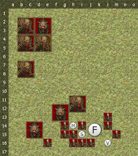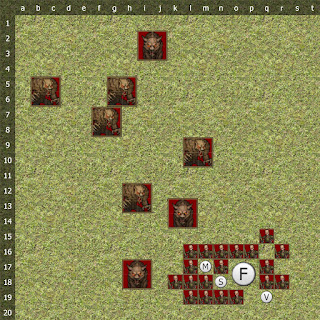 The priestess advanced, getting into the middle of the four warriors. "Malar, bless this Hunt, and guide our blades as we seek our prey!" With those words, a bloody aura surrounded her and the other werewolves, as well as two of the dire wolves.