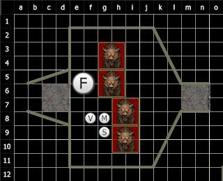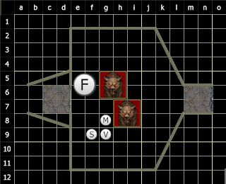 I did not bother jumping the gap. Why bother, when I could fly? A quick beat of my wings took me over the gap, and I saw the wolves arrayed in an arch around the passage, ready to attack anyone who made it past the pit trap. But either they had been trained to be wary of area effects, or they were wanting to trap and encircle anyone coming into the room, because they were backed up and spread out. That left the entrance uncovered!