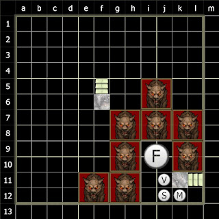 As expected, the wolves crowded around Frostmane, trying to bring him down. Their primal assumption that he was the biggest threat in the room was proven correct, as one wolf forced his way between Frostmane and the wall so he could snap at Vestele. But while the priestess's shield ensured she remained safe, the wolf's hide did nothing to protect him from Frostmane's jaws, which tore bloody gashes in his hide. Frostmane paid for that moment of distraction, however, as one of the other wolves managed to get a solid bite on his shoulder, eliciting a painful howl from the wolf.